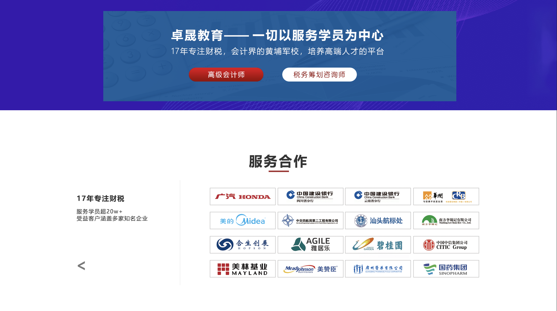 卓晟教育 · 打造财會(huì)黃(huáng)埔軍校(xiào)廣州君明教育科技有限公司(下稱:卓晟教育)———— 是一家專注于财務管理(lǐ)及财經類考試考前輔導的(de)培訓機構,成立于2011年1月(yuè),前身隸屬于中華會(huì)計(jì)網校(xiào)廣東服務站,自2005年建站以來,培訓了包括廣州恒大(dà),廣晟集團,珠投集團,碧桂園......各企業(yè),會(huì)計(jì)師事務所,廣東省部分(fēn)大(dà)中型醫院,學校(xiào)财務負責人(rén)等,數十萬會(huì)計(jì)人(rén)員,在廣東财政系統有(yǒu)“黃(huáng)埔軍校(xiào)”的(de)美(měi)譽。2011年至今,每月(yuè)至少(shǎo)安排一場(chǎng)以上(shàng)大(dà)型财稅公開(kāi)課,每年接近30餘場(chǎng)的(de)企業(yè)内訓課,20餘場(chǎng)專題課和(hé)專業(yè)論壇。年培訓财務管理(lǐ)學員超過2萬餘人(rén)次,十三年的(de)培訓經驗,課程以實用(yòng)、新穎、前沿爲主,平台有(yǒu)超過40位專業(yè)授課老師。...
