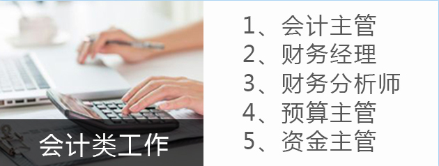 會(huì)計(jì)類工(gōng)作1、會(huì)計(jì)主管 2、财務經理(lǐ) 3、财務分(fēn)析師 4、預算主管 5、資金(jīn)主管