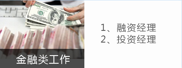 金(jīn)融類工(gōng)作1、融資經理(lǐ) 2、投資經理(lǐ)