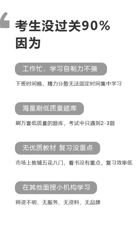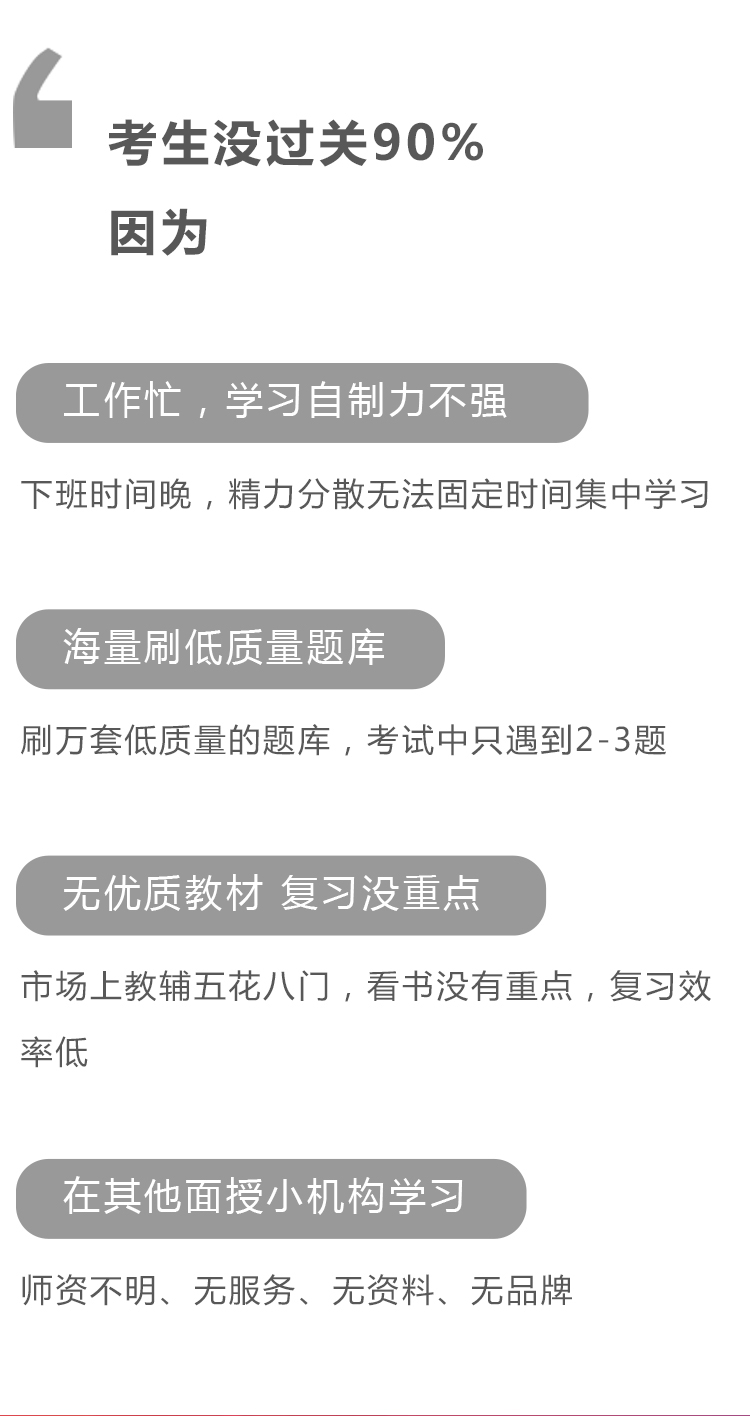 老師傳授考試技巧和(hé)縮小(xiǎo)複習(xí)範圍,讓考生高(gāo)分(fēn)的(de)通過考試。