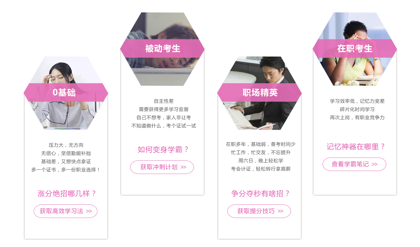 老師傳授考試技巧和(hé)縮小(xiǎo)複習(xí)範圍,讓考生高(gāo)分(fēn)的(de)通過考試。%以上(shàng)。